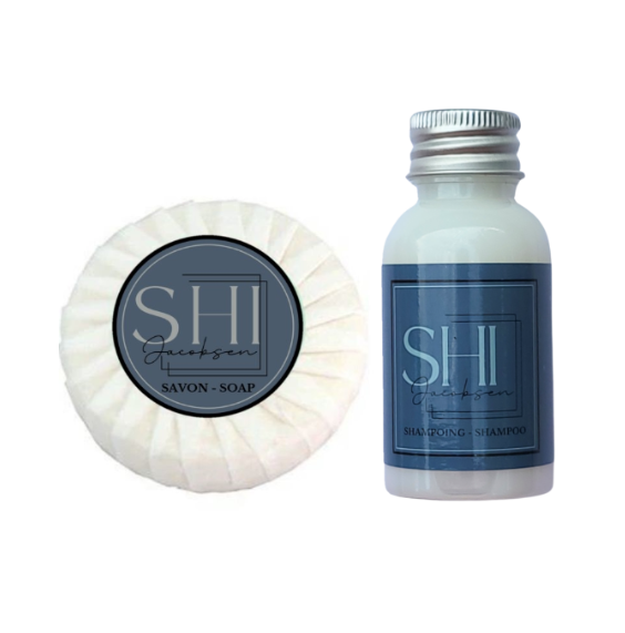 Set de courtoisie SHI JACOBSEN , savon 15g + Shampoing 30ml ( Lot se 50/ 100/ 200)